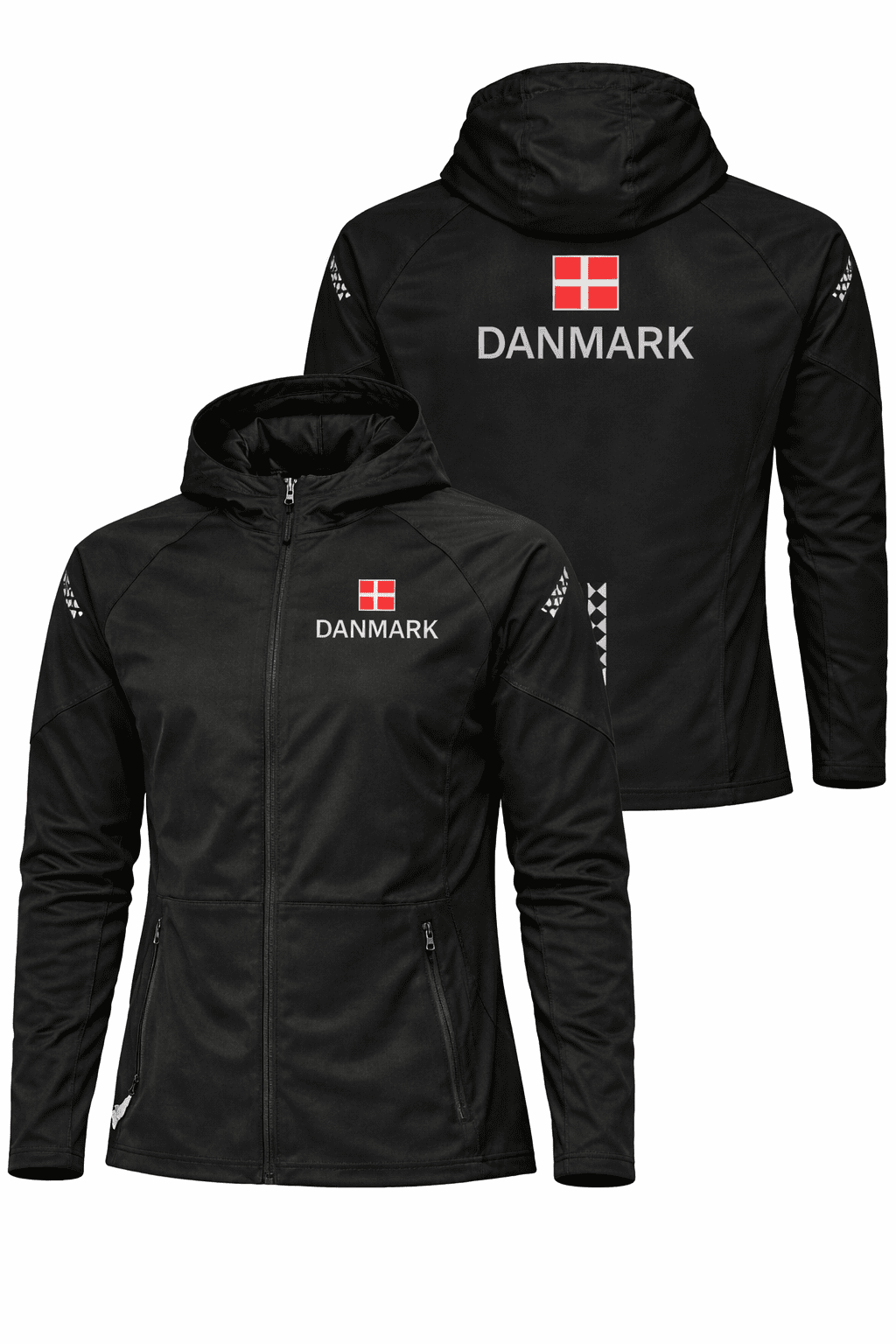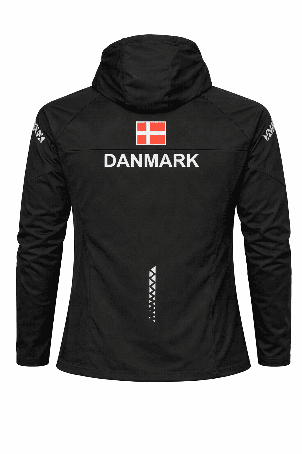 Reflekterende tryk på ryggen over kanten og på ærmerne i overarmshøjde