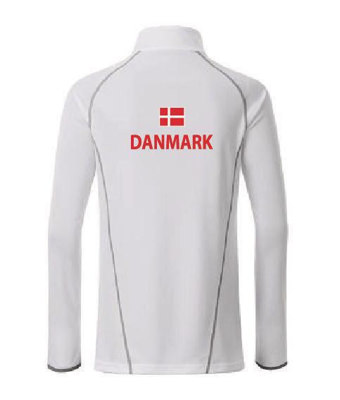 Shirt, lange ærmer og zip, med DK print, hvid - James & Nicholson